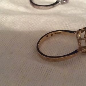 1 gold...not sure if plated. Inside inscription says Korea. 1 small CZ. Swirly design. Size 7 or 7.5