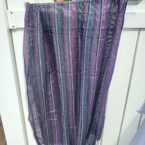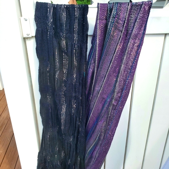 2 NWOT scarves never worn. The black scarf has beautiful sparkling silver (photos don't show to well) measures 60 inches long. The purple measures 72 inches long. **I will sell separately.**