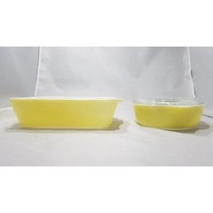 2 set of Yellow Round Pyrex 471, 1 pt Cassarole Baking Dish & Refrigerator Dish