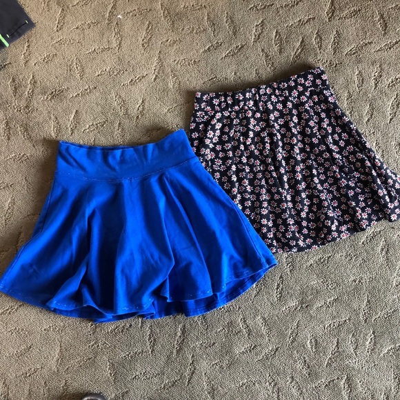 1 blue justice skirt with built in shorts and one floral mia chia skirt. kids medium (10-12) age