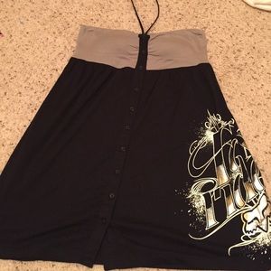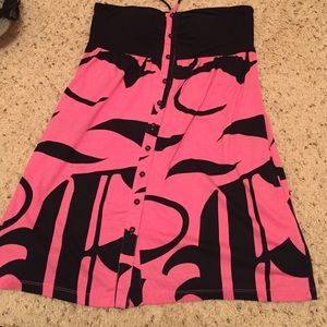 Two never worn sun dresses, one with tag and one without; one beautiful hot pink and black designed, & one color block grey/ black with a beautiful design on the left side. Can be worn as a halter or a strapless. It's up to you!