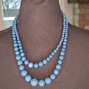 2 string plastic beads with lobster claw closure. Deep turquoise