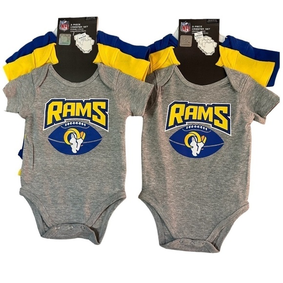 2 sets NFL Rams Infant 3-Pack sets Game On Bodysuit Set Royal Gold Gray 6 onesies in total