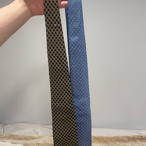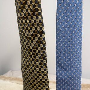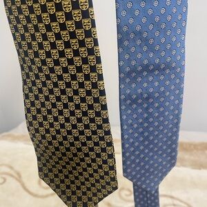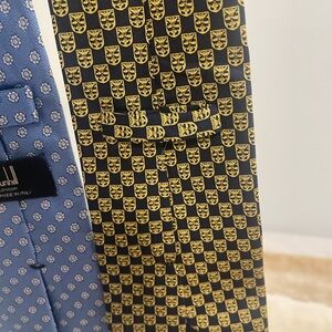 2 used ties Sold together !!! Looking at offers !!!Elevate your formal attire with these exquisite Dunhill ties, crafted in luxurious silk. Available in classic black and sophisticated blue, these ties feature subtle patterns that add a touch of elegance to any outfit. Perfect for professional settings or special events, they are a must-have accessory for a polished look.