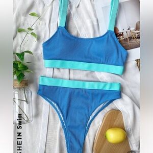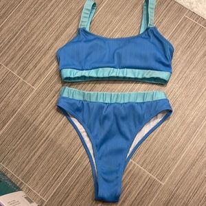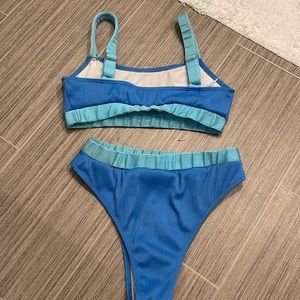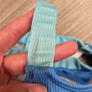 Slight discoloration on strap from wearing it in the river water but still has a lot of life left!! No rips. highwaisted/high cut. Removable pads. adjustable straps. Color block ribbed material beach summer vacation pool swim cheeky
