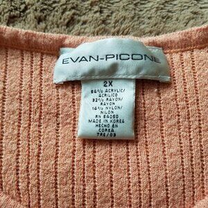 -Lovely knit tank by Evan-Picone. Simple sleeveless sweater with round neck provides a perfect background to your favorite accessory. Soft rib knit fabric has great feel and hangs well. Warm peach color compliments most skin tones. Perfect for layering. EUC.