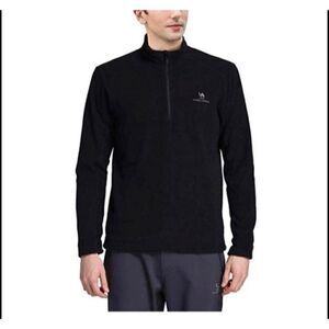 Crown Half Zip Fleece Jacket Men Long Sleeve Pullover Lightweight Outdoor Sweatshirt Black Medium
