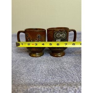 2 vintage 70s cottage core OWL floral mugs coffee cups. CUTE