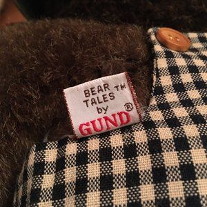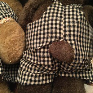 These will be adorable in your nursery or child's room. Vintage, 1980s teddy bears in matching black and white gingham dress and overall, green felt hats. 14 inches tall,, good condition, very clean. from non-smoking home.