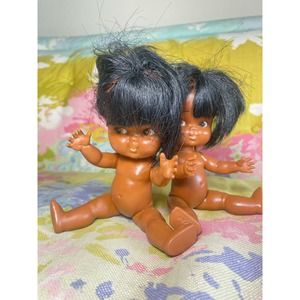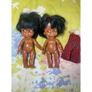 both ladies have had a hair cut from what I can tell by other photos online. They also come with a vintage dress that does not originally belong to them. Otherwise a really great pair of vintage dolls.