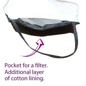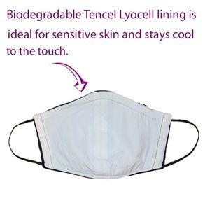 Outside Material: linen, faux silk. Lining touching the face: Tencel Lyocell. An extra layer of cotton inside acts as an additional filter. Handwash in cool water only. Remove the wire before washing.