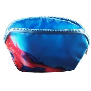Cosmetic bag measures approx. 5” tall, 9” long . The lined bag comes with a small luggage ID tag and stickers to personalize it.