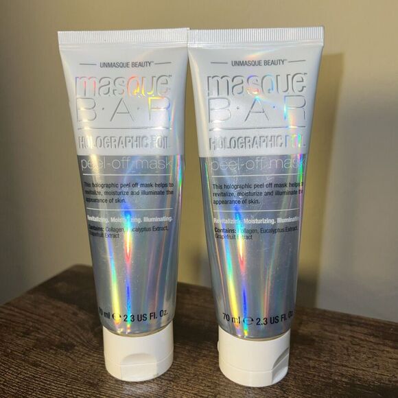 2 x UNMASQUE BEAUTY Masque Bar Holographic Foil Peel Off Mask 2.3 FL.OZ Tubes
