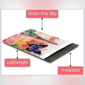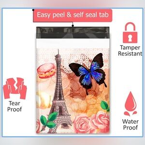 Set of 10x13 French Themed designer Poly Mailers Shipping Envelopes Premium Printed Bags with Eiffel Tower design on a colorful background. NIP