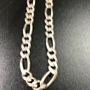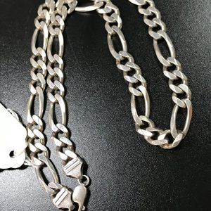 20 1/2" long Sterling silver Figaro chain necklace. This necklace is 9.52 mm wide and it weighs 63 grams. This is Italian Silver. This is a vintage chain.