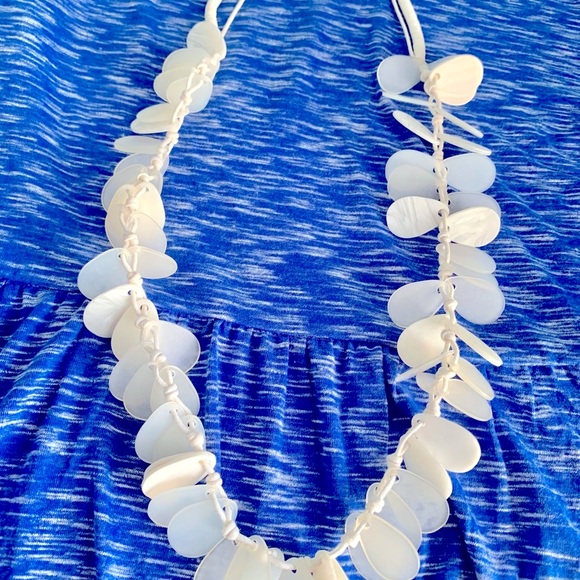 20” White transparent teardrop shapes with white beads necklace