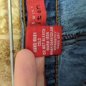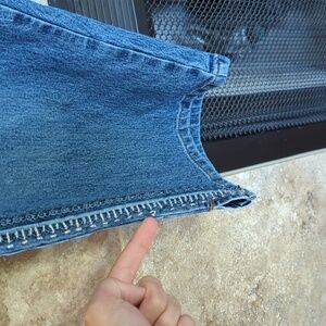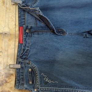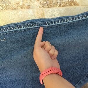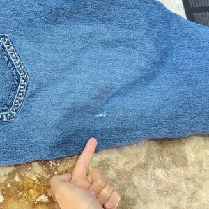 From a smoke-free and pet-free home. There is some missing beading and two areas where the denim is damaged on the back of the left leg. Pictured and priced accordingly.