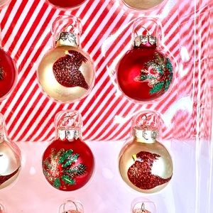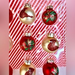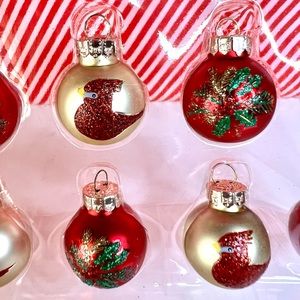 20 Christmas Mini Glass Ball Ornaments Red Cardinal Winter Flower Red Gold