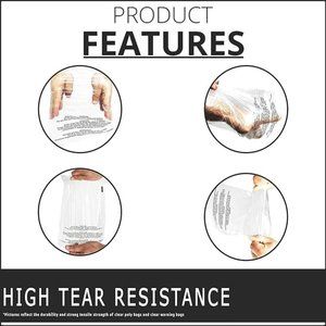 Clear self-seal poly bag with a 1.5 Mil thickness, featuring a Suffocation Warning; Crafted from durable, tear-resistant polythene material, it shields your products from dirt, moisture, and water, while elegantly displaying your items