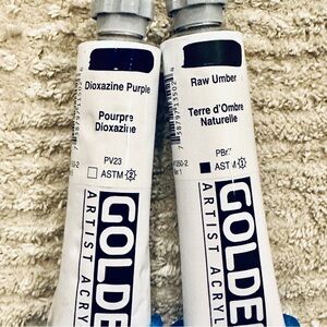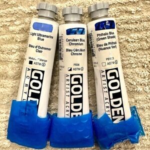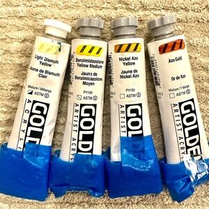 Set of Golden artist acrylic paints. Includes various vibrant colors. Perfect for artists and hobbyists.