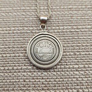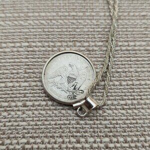 20 Inch Sterling Silver Carved US Quarter Initials MK Necklace A6012