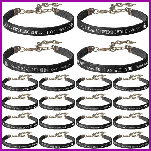 20 Inspirational Bible Verse Leather Bracelets Set for Women Men