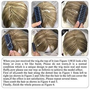 3.The top of wigs look a bit frizzy ,It is a normal condition which is a unique design to part the wig more real and more fluffy.Please use our way as follows to achieve the model effect.