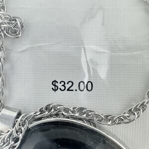 20” NWT Red Velvet Bijoux Silver Tone Oval Onyx Cabochon Pendant Necklace