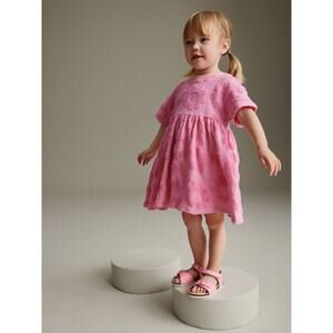 $20 Next Girls Bright Pink Terry Flower Dress - 5-6 years