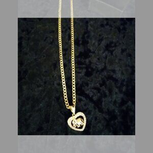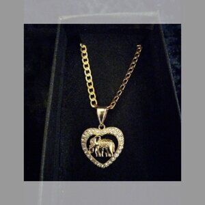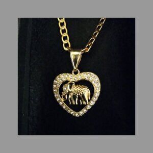 Beautiful 20" Plated Chain With CZ Stones Spread around a heart shape pendant with a elephant
