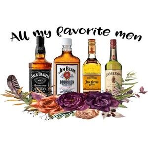 Picture shows bottles of alcohol and quote “ All my favorite men”