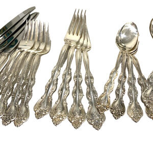 Vintage International Silver Company silver plated flatware set - a set of 20 pieces / 5-pc place settings for 4 people. A pretty 1970's pattern named "Interlude" that is a fine starter set for everyday use - makes a great way to grow your silver service. These pieces are all in excellent condition - some minor surface wear on a few pieces but overall this set is excellent and could be mistaken for new - no damage or flaws - ready to use!