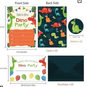 20 Pack Dino Party Dinosaur Invitations with Envelopes and Stickers