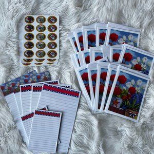 20 Patriotic cards, 30 envelope seals, 5 large notepads, 2 small notepads