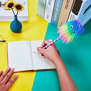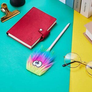 Rainbow Fun Pens for Kids: this rainbow pen is composed of funny facial expressions and fluffy plush in gradient colors, different styles of eyes look cute and novel, easy to attract children's love and liking