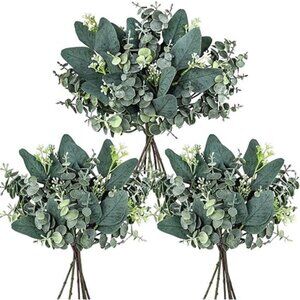 🧿These mixed artificial eucalyptus leaves stems are perfect for using to add to wedding bouquets and wedding greenery decoration, make unique farmhouse eucalyptus wreaths and swags, create a nature-inspired floral arrangements and table centerpieces with other artificial flowers, or combine with vintage vases for a simple but elegant display. They are great decorative greenery throughout the whole year to brighten up your surroundings.