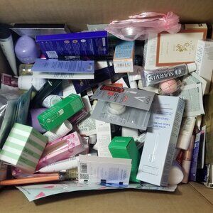 Samples include makeup, skincare, lip scrubs, hair care, and much more.
