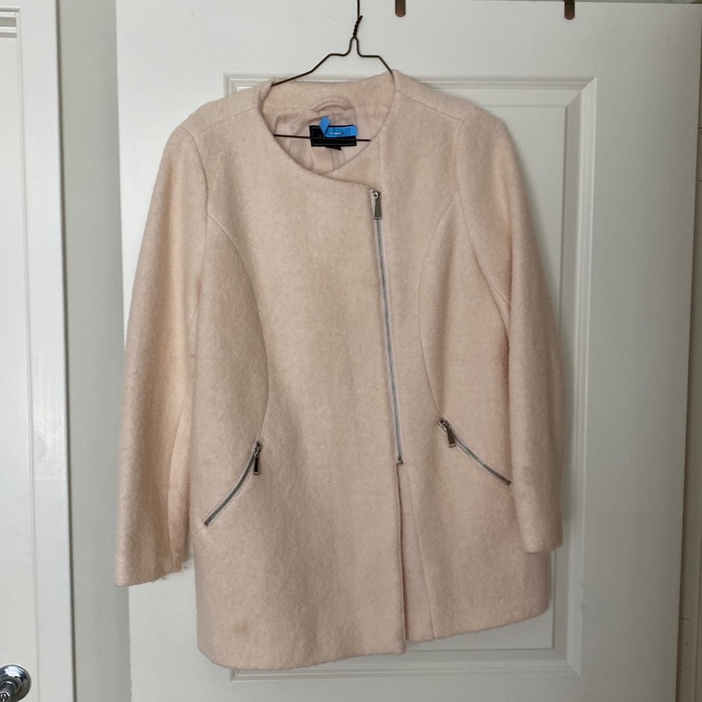 An ALL occasion coat to be dressed up or dressed down. Pair it with nice denim jeans and your fancy shoes. Consider this piece as an accessory not just outerwear. The color is a blush pink/cream. What color does that make? 🤦🏿♀️I don’t know but it works with any outfit you pair it with plus your loveliness.