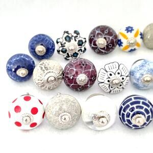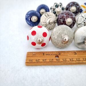 20 Vintage Porcelain Door Cabinet Knobs Drawer Pull Floral Geometric Pattern Prints Boho Mix, 1 is missing the bolt nut, Good Pre-owned condition