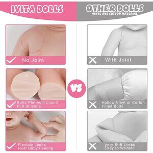 Better than viny dolls : Our full silicone baby is made of Safe Liquid silicone. The doll is anatomically correct, it is a solid reborn doll, unlike other ordinary vinyl dolls, which are hollow, or filled with sponge, it is a weighted body that the "real" baby feels