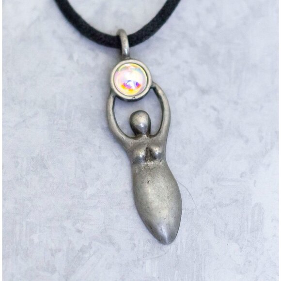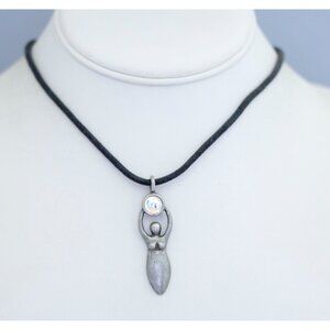 This is a 20 inch necklace with black lace design that has a mermaid pendant and rhinestone.