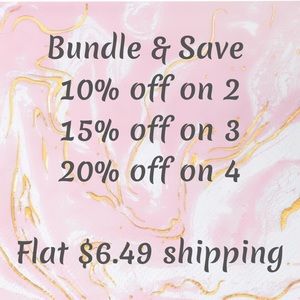 Use the "add to bundle" button and automatically get 20% on 4 items or use the "offer" button and receive offer back with : 10% off on 2 items 15% off on 3 items Thank you for shopping ! Ask questions !