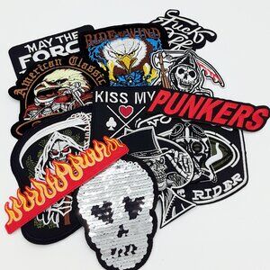 I have two lots of punk bike patches available. These are iron on, however, I recommend sewing them down for durability if used on jackets and items that are washed frequently. These are good for book bags, jackets and trucker hat designs. The buyer will get either of the 2 lots shown. If you prefer one or the other just message me. I am not going to remix the lots, they are sold as shown and contain 12 patches.
