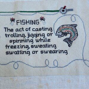 Finished Cross Stitch Canvas, 20 x 15 inches, featuring a unique Fisherman's Quote. Ideal for home decor or as a personalized gift. Handmade with love and precision.