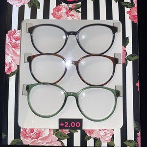 2.00 BETSEY JOHNSON 3 Reading Glasses THIN TORTOISE GREEN ROUND light weight