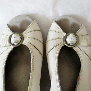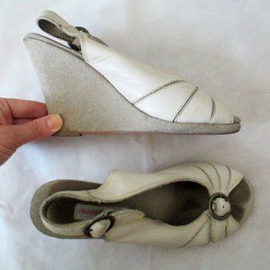 Preloved Charlotte Ronson creme leather wedge heel sandals in size 5.