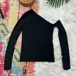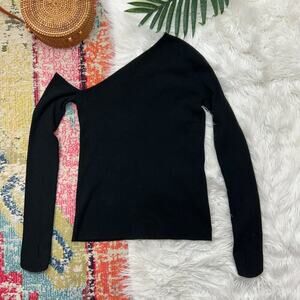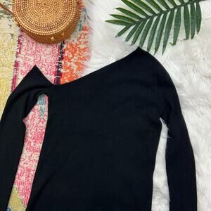 $200 Fillipa K Neutral Black Knit One Shoulder Nicole Asymmetric Sweater Large