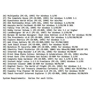 System Requirements: Varies for each title. Some are DOS, some are Windows 3.1 and some are Windows 95 or 98 or XP or 2000 or Vista.