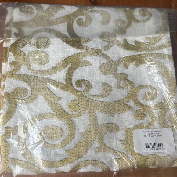 $200! NWT Flourish Linen Deco Pillow Sham - 20" x 20" - White / Lime