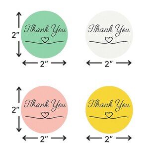 Add a personal touch to your packages with these 2-inch round “Thank You” stickers! Available in vibrant green, yellow, pink, and white — each sticker features a sweet heart and script font printed in black. Perfect for sellers, crafters, or gifting.